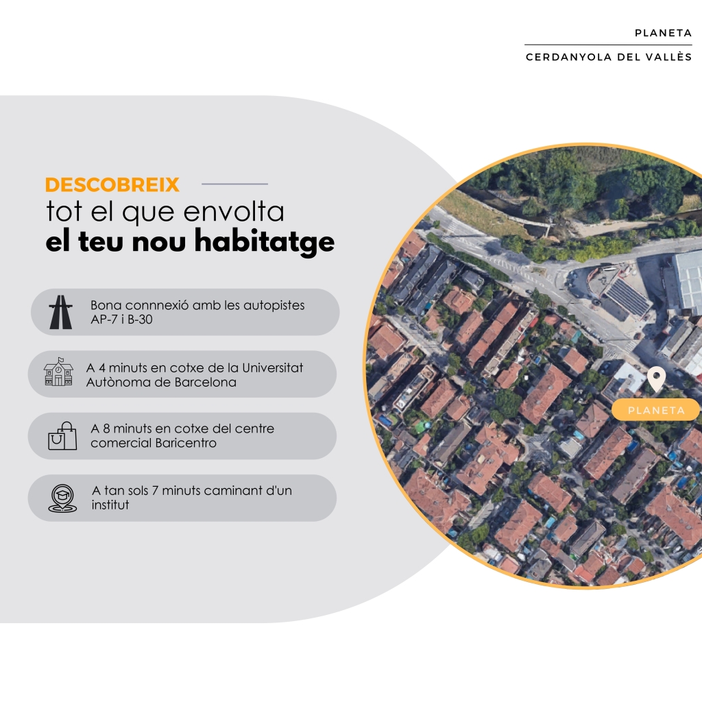 ¡Últimos 2 pisos a la venta de la promoción Planeta de Cerdanyola del Vallès! Son espaciosos pisos en 1ª y 2ª planta. Las viviendas están formadas por:Vivienda de 1ª planta: 87 m2 construidos que cuentan con cocina-comedor-salón, 3 habitaciones, 2 baños, lavadero y terraza de 17,86 m2.Vivienda de 2ª planta: 114 m2 construidos que cuentan con cocina-comedor-salón, 4 habitaciones, 2 baños,...