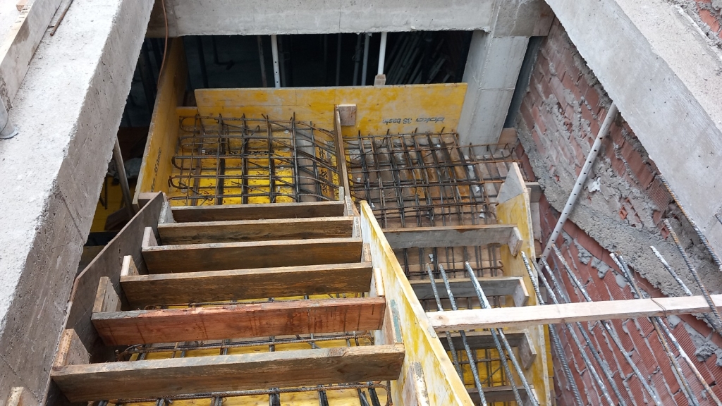 Continuamos trabajando en la construcción de la promoción Cordelles, donde ya hemos hormigonado el forjado de techo de la planta 1a de c/ Sant Salvador y ahora estamos hormigonando los pilares de la planta 2a.