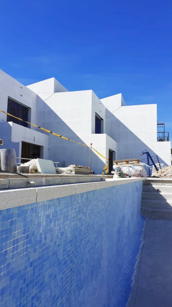 La promoción Les Cabanyes ya está avanzada y podemos ir viendo no sólo la estructura y las fachadas de las casas sino también el avance en las cocinas, baños y piscina.
