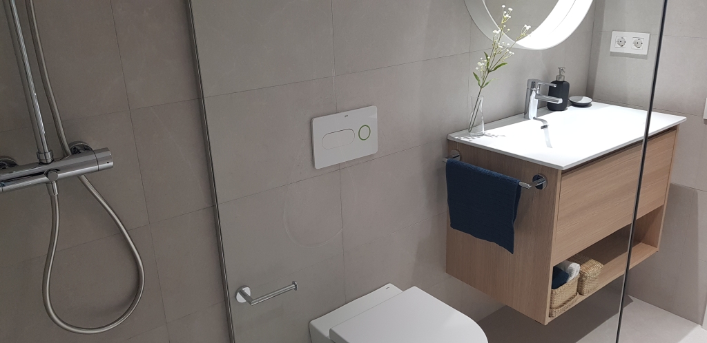 Los acabados del piso son de alta calidad, las cocinas están equipadas con electrodomésticos de la marca Balay (lavavajillas, frigorífico, horno, microondas, vitrocerámica de inducción). El sistema de climatización es mediante aerotermia, una fuente de energía renovable.
