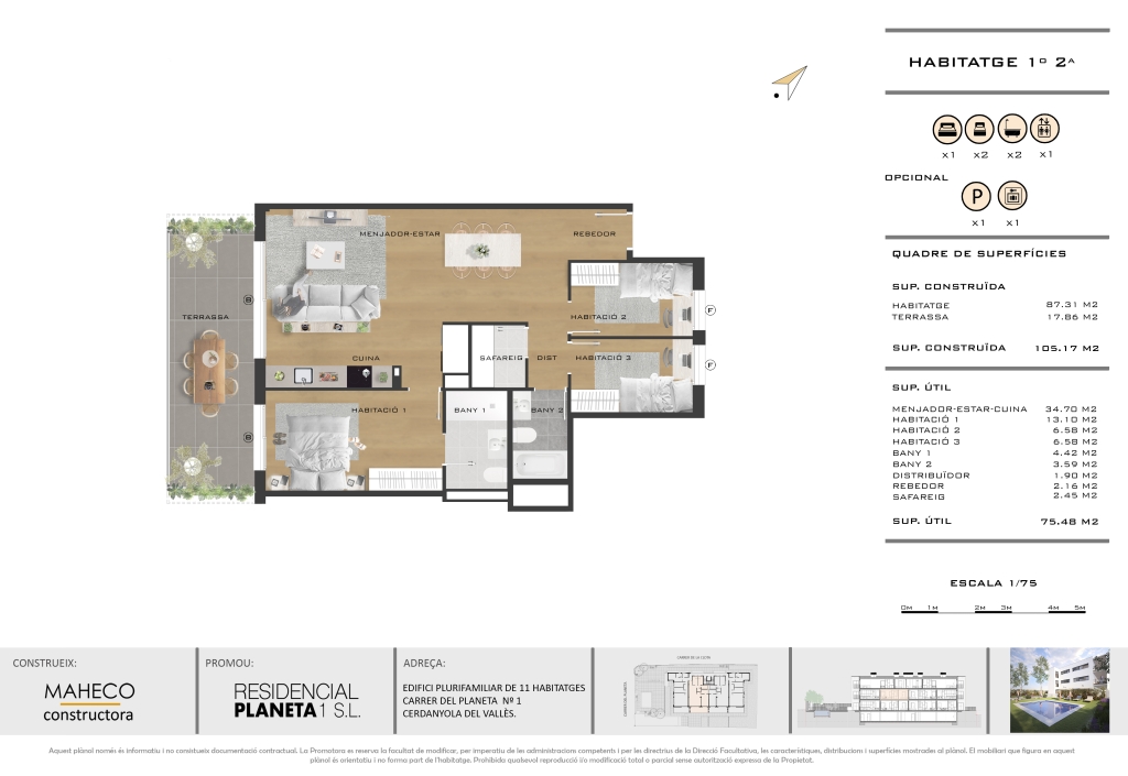 El edificio está ubicado en el barrio Serraparera, una zona residencial, tranquila y bien comunicada con las autopistas AP-7 y B-30.