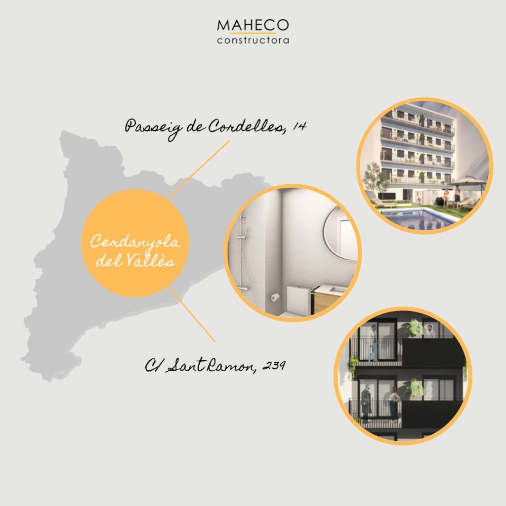 Nuestro Departamento Comercial organiza visitas al showroom instalado en nuestras oficinas, situadas en MAHECO properties&services, C/ Camèlies, 13, Cerdanyola del Vallès, donde podrán ver una exposición de los acabados.