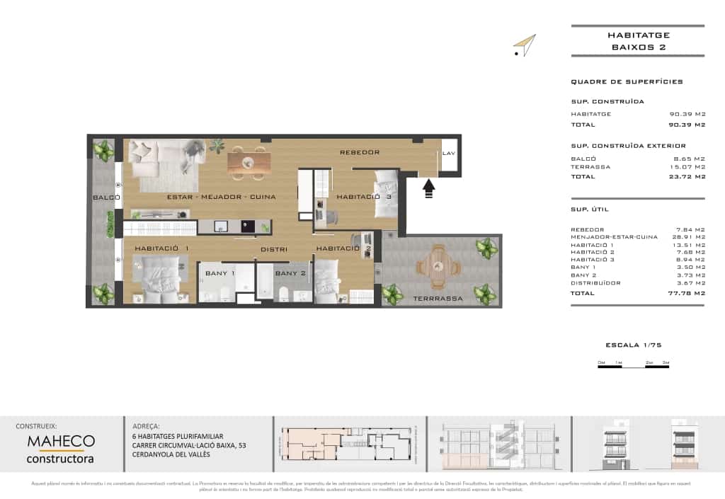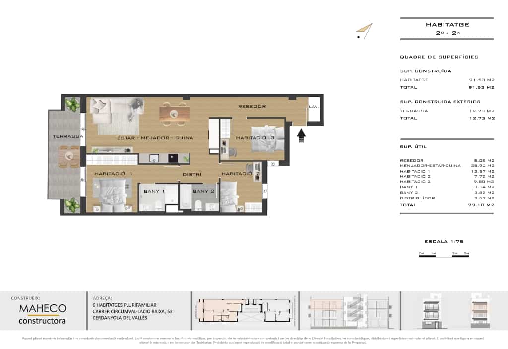 Nuestro Departamento Comercial organiza visitas al showroom instalado en nuestras oficinas, situadas en Carrer Camèlies, 13, de Cerdanyola del Vallès, donde podrán ver una exposición de los acabados de esta promoción.