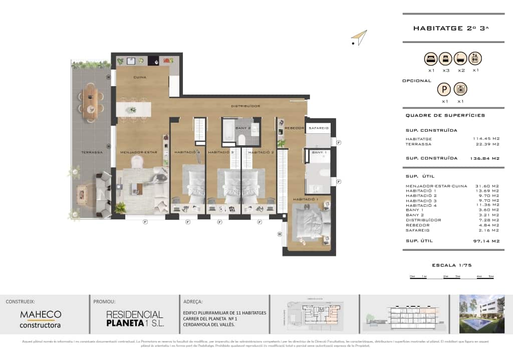Esta promoción está situada en el barrio residencial de Serraparera, un lugar tranquilo y cercano al centro de la población. Consta de 11 viviendas distribuidas en planta baja, primera y segunda.