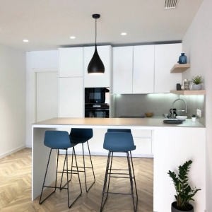 Los acabados son de alta calidad, las cocinas están equipadas con electrodomésticos integrados de la marca Balay (lavavajillas, frigorífico, horno, microondas y vitrocerámica de inducción).