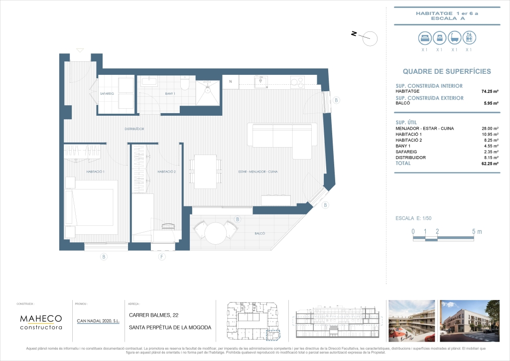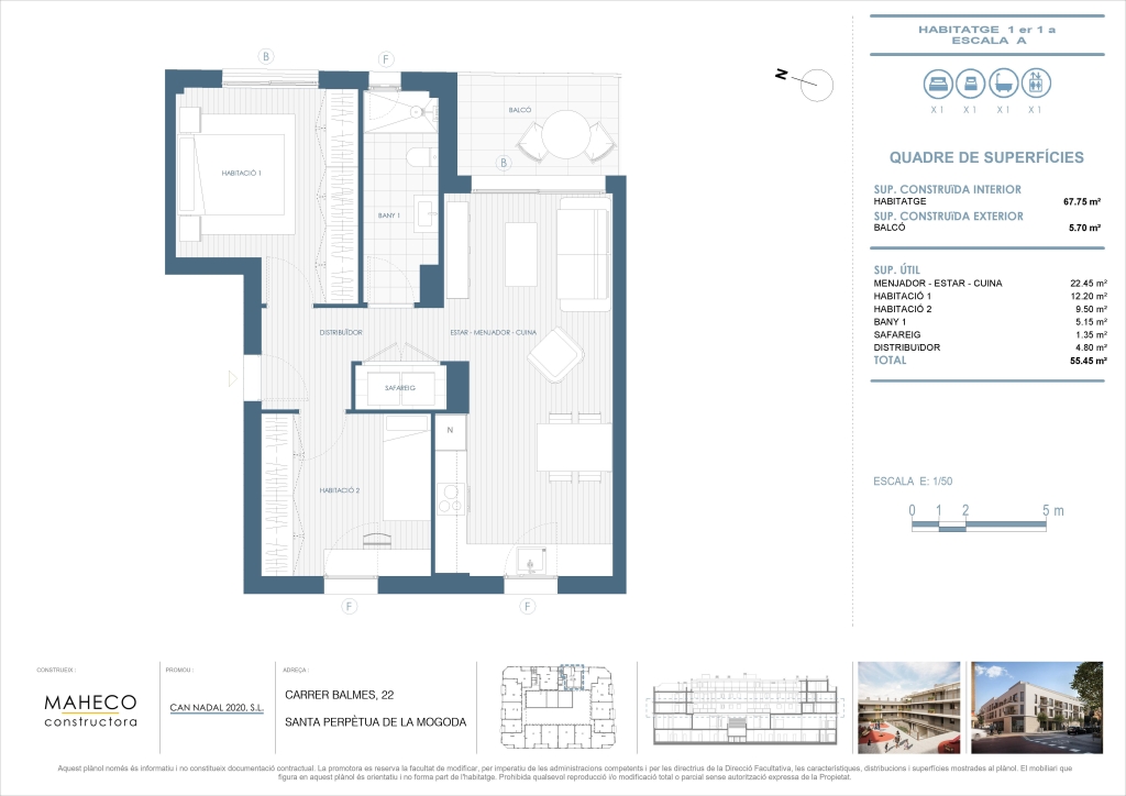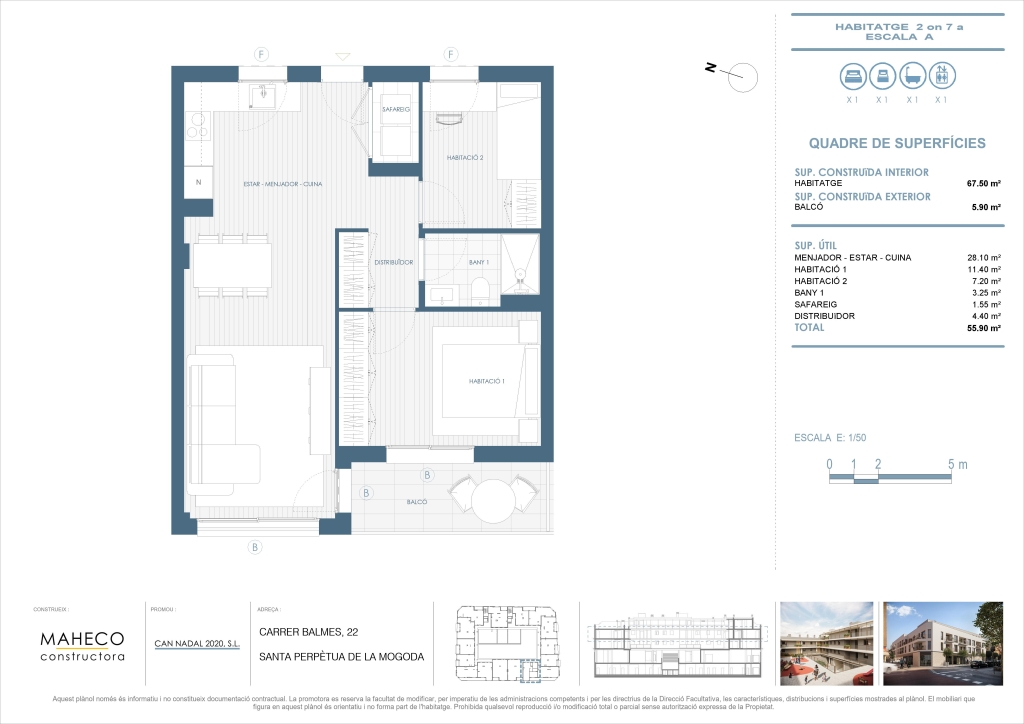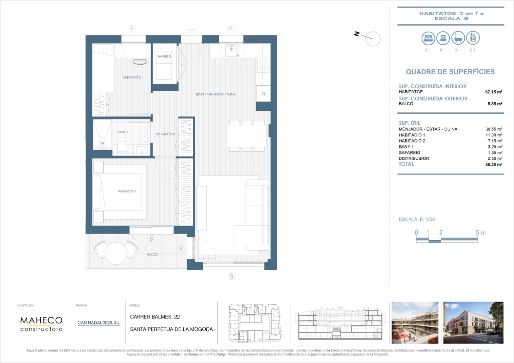 La promoción Balmes 22 de Santa Perpètua de Mogoda dispone de diversas tipologías de viviendas, desde 1 hasta 3 dormitorios.